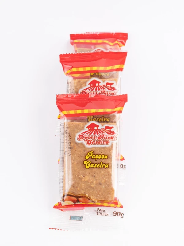 Deliciosa paçoca de amendoim em formato para espeto, pesando 90g por unidade. Ideal para festas, lanches ou para servir como sobremesa, mantendo o sabor tradicional e a textura macia que todos adoram.