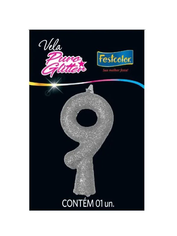Vela Puro Glitter Prata 9
